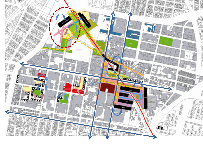 Se pueden rescatar estas zonas, convirtiéndolas en espacio público, creando actividades y usos necesarios en la ciudad, generando un detonante urbano. Esta zona, por ser el centro de la ciudad, es de gran importancia económica y comercial y debido a esto cuenta con un gran número de servicios.