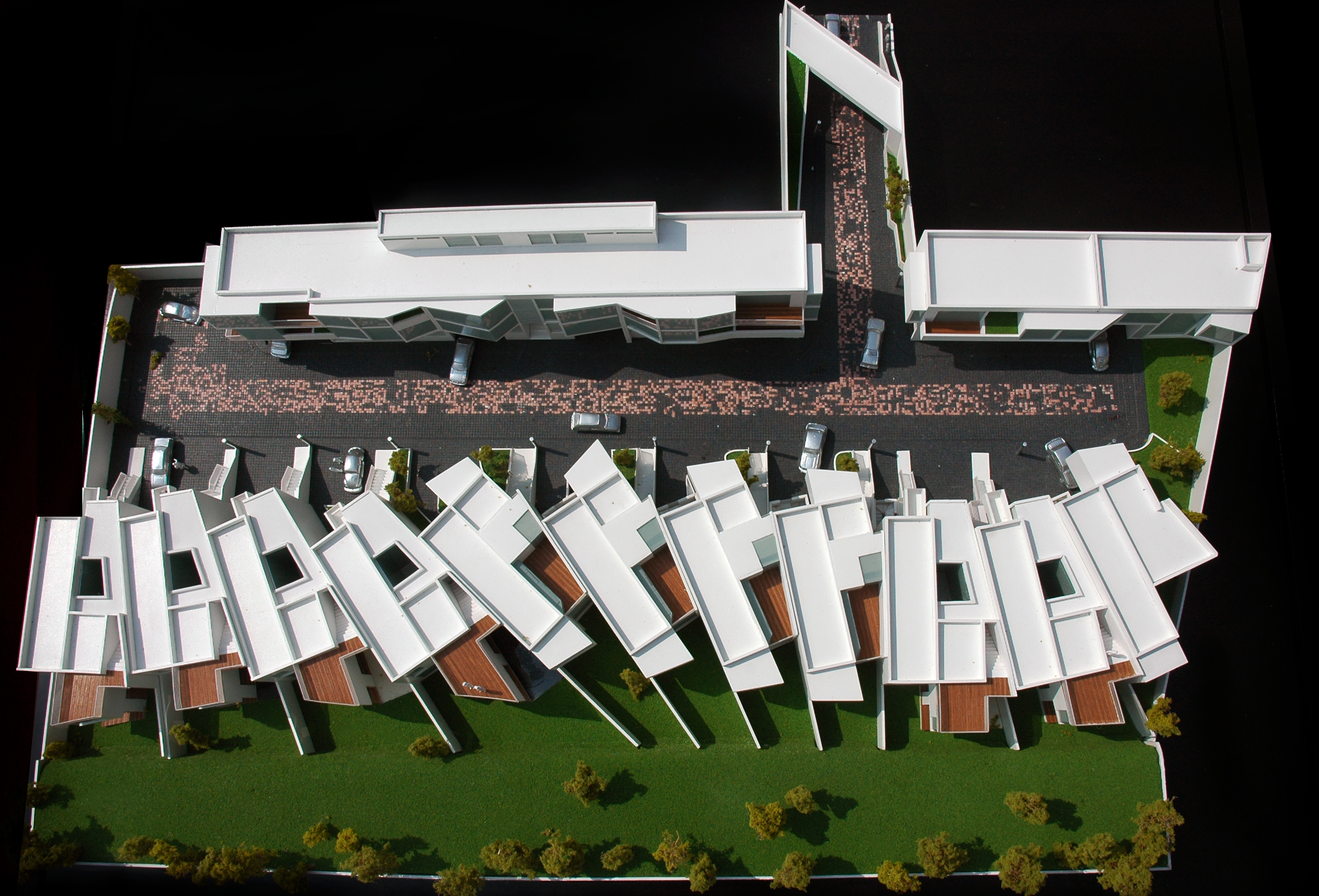 Del otro lado de la calle central se proponen cuatro maisonnetes de dos pisos y dos penthouses que tienen acceso directo desde la calle pero en el tercer piso se extienden sobre las otras dos maisonettes.