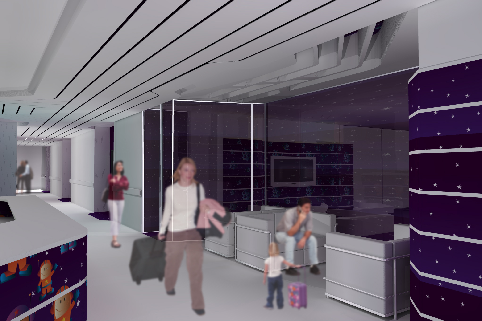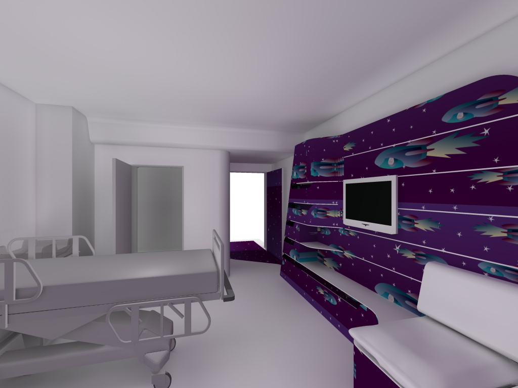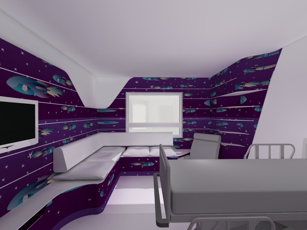 Estas zonas de juego son esenciales para ayudar a los niños a prepararse a una experiencia posiblemente muy difícil y ayudar a reducir el stress y la ansiedad. Es importante, que estas zonas de juego también consideren a niños más grandes –adolescentes- para que también puedan encontrar espacios acordes a su edad. En este caso, se ha propuesto la introducción de mesas de cómputo, así como espacios de proyección de películas.