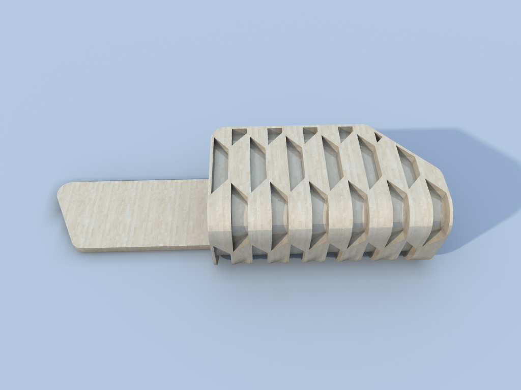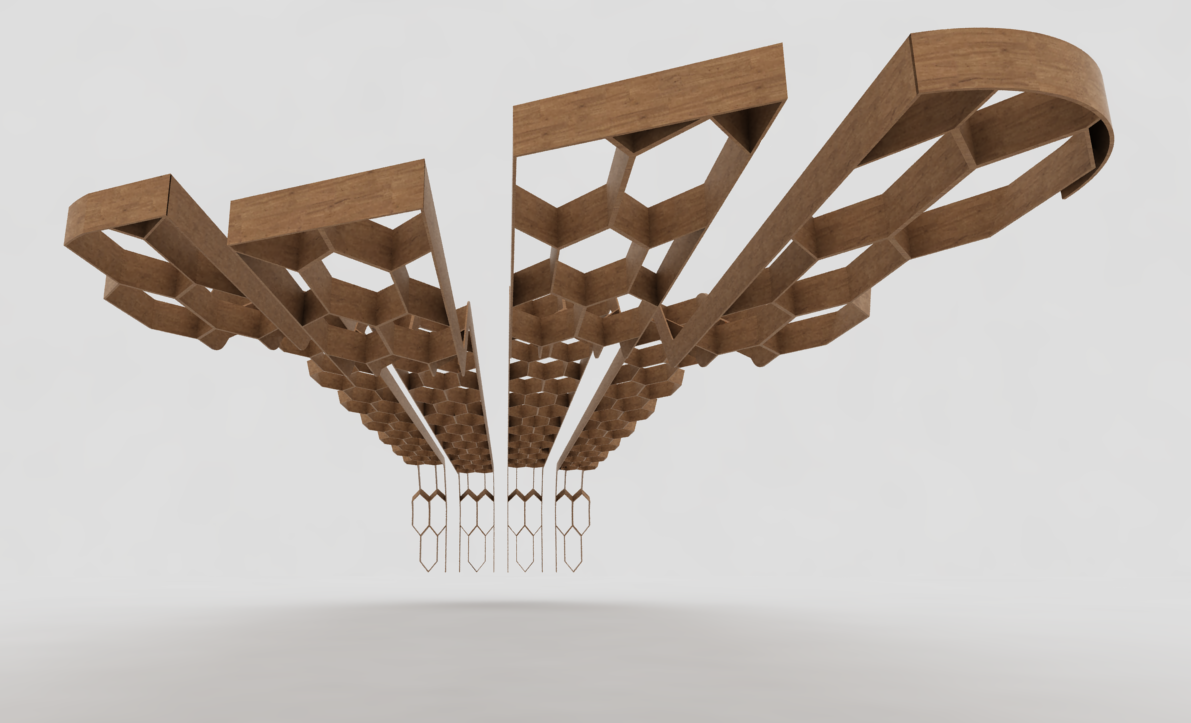 A esta gran celosía se le van anexando algunos elementos distintivos como las salas virtuales o las conchas de madera que van generando diferentes paquetes de programa con sus propios ambientes. De esta manera, el proyecto sólo puede ser comprendido a través de múltiples perspectivas, como un paisaje.