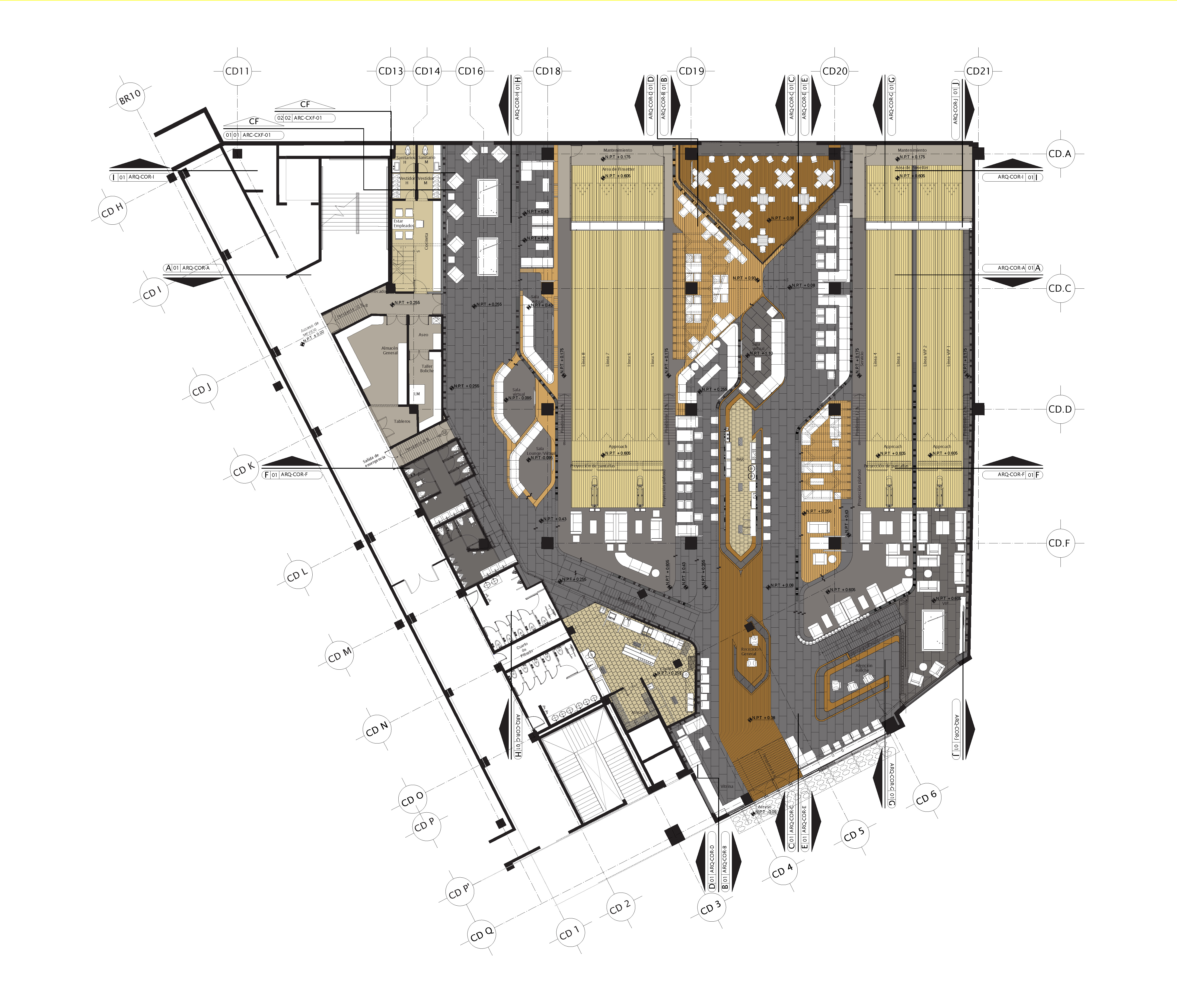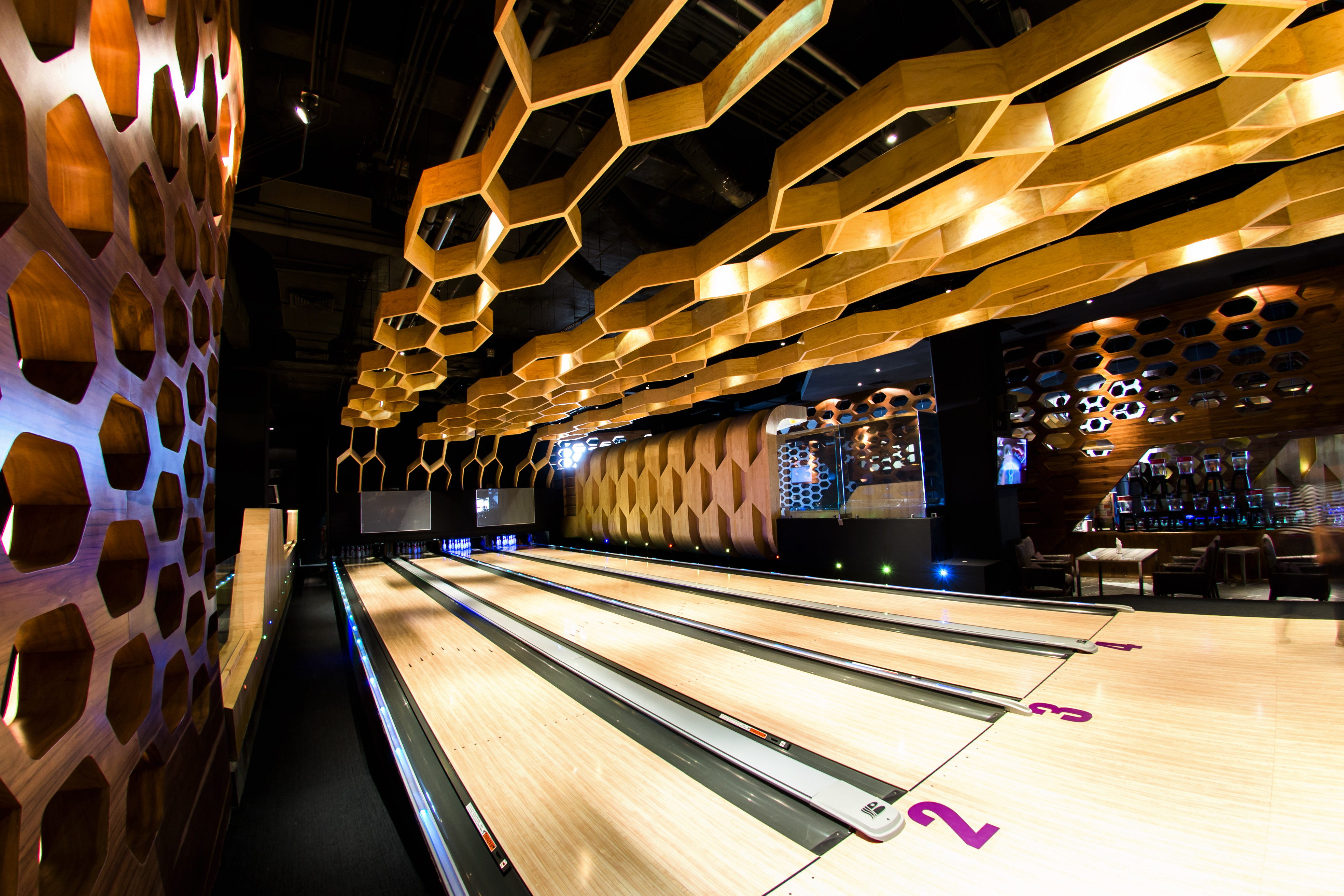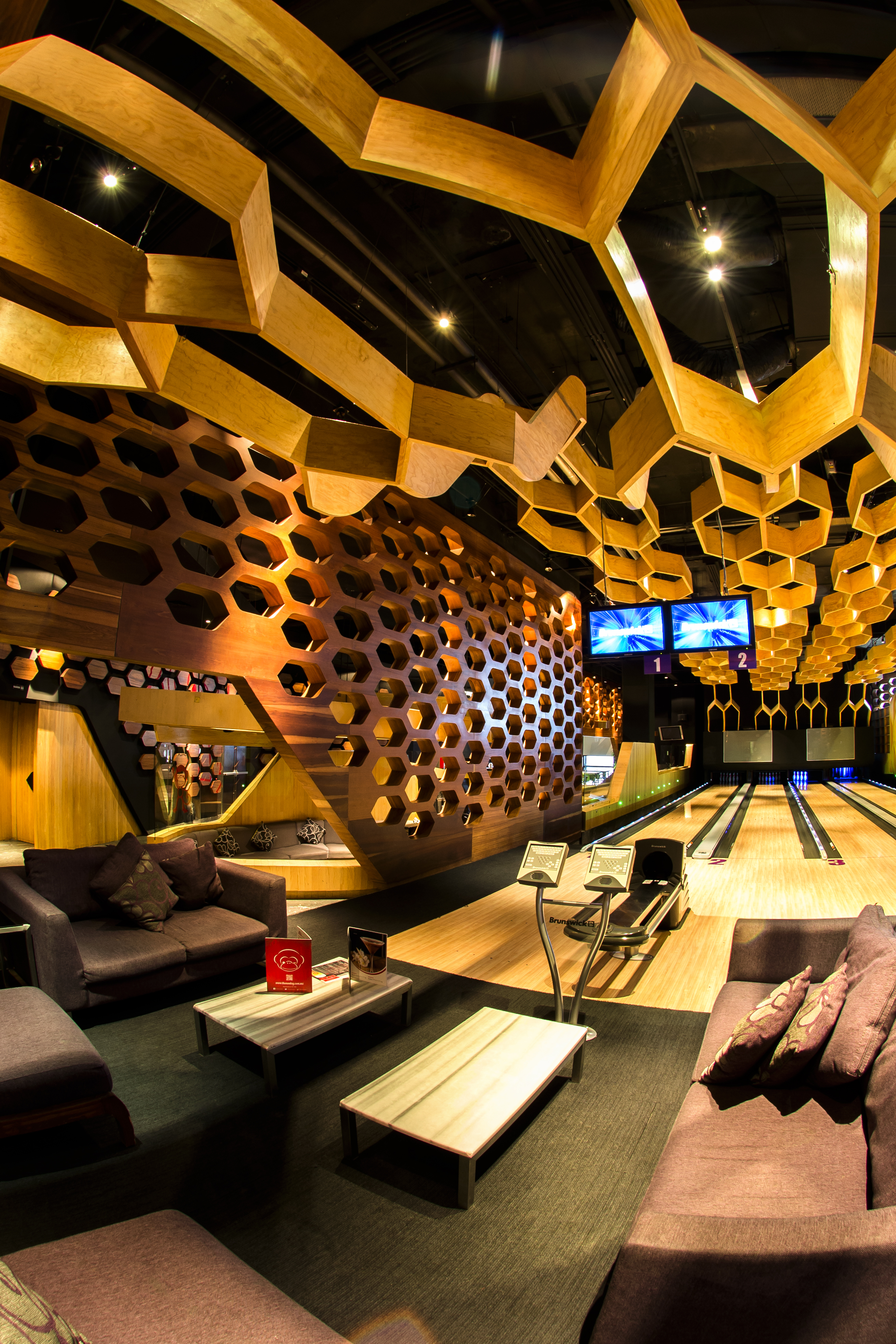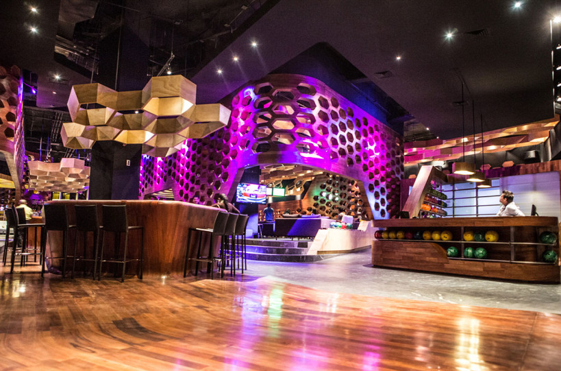 Bajo la consigna de creación de un nuevo concepto de entretenimiento que integrara restaurante, bar, boliche, salas de juegos virtuales y billares, se organizó el programa funcional en bandas, en donde se insertaron diferentes hitos formales y programáticos. Estas “cápsulas” de programa se van ligando entre sí creando diferentes ambientes. Como en un paisaje, las superficies arquitectónicas son continuas aunque en algunos casos se abren y permiten generar diferentes relaciones visuales. La superficie elegida para lograr estas relaciones visuales fue la de dos grandes celosías de más de 800 m2 que dividen e integran al mismo tiempo los diferentes ambientes del proyecto.