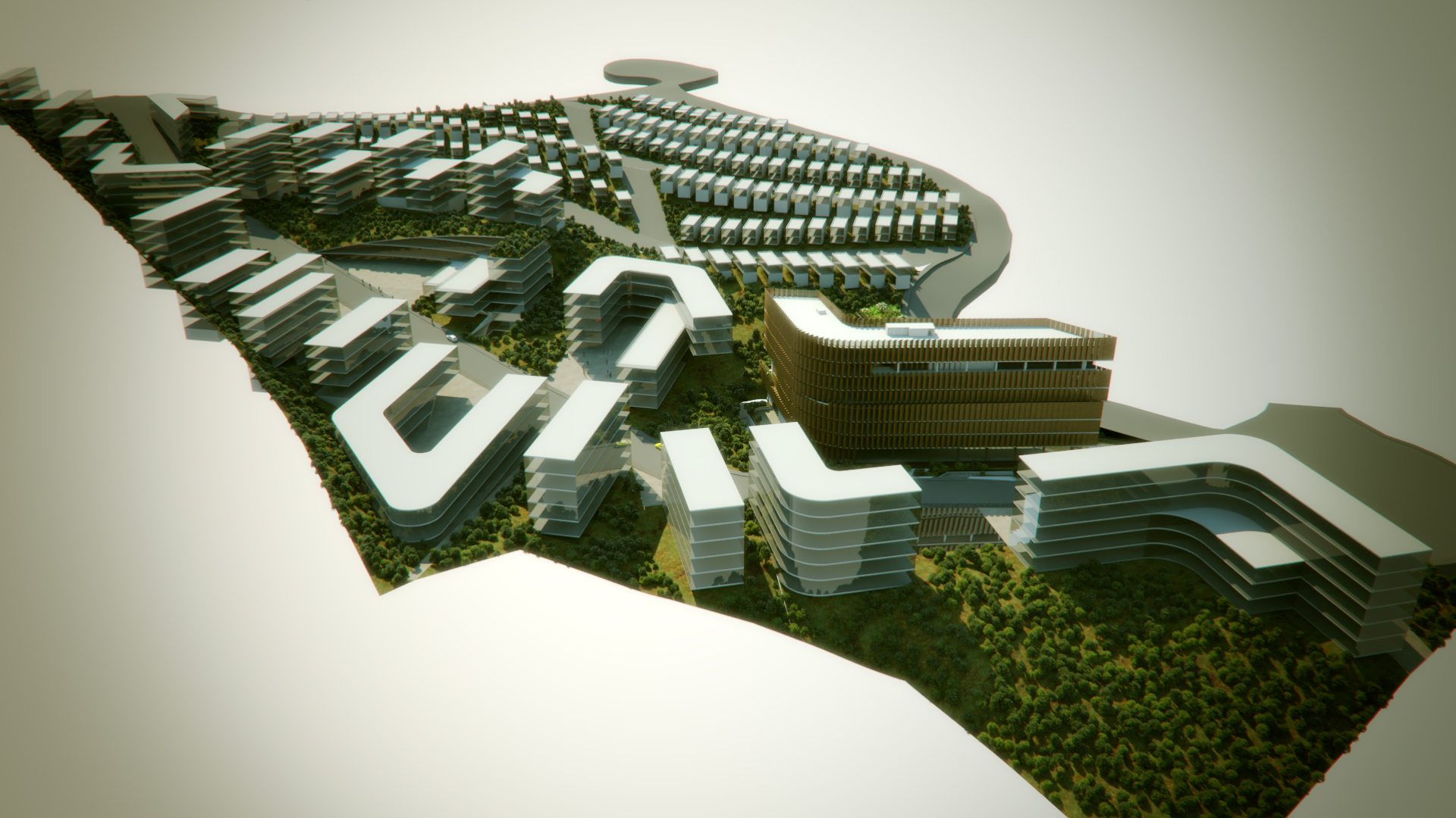 La generación formal del Masterplan parte de una operación doble, aparentemente opuesta: Integración y diferenciación. Esta operación simultánea por la cual se logran espacios continuos, pero con identidad propia es la clave para “hacer ciudad.” El proceso de diseño parte de una serie de acciones que buscan generar una visión global de proyecto: topografía, retícula y concepto de espacio abierto; y continúa con acciones específicas de diferenciación: distritos, tipologías distritales y espacio público