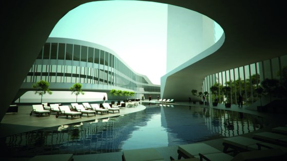 El proyecto del edificio es inseparable de la propuesta del Masterplan que lo rodea. El proyecto parte de un volumen genérico que se adapta a la retícula y concepto espacial del entorno urbano. Los volúmenes del edificio son concebidos como extensiones de las franjas de espacio abierto.